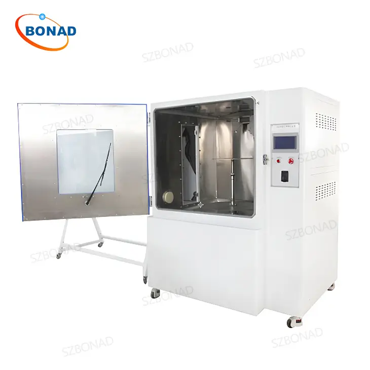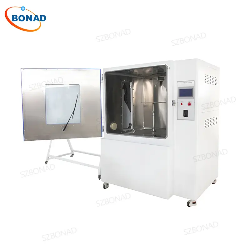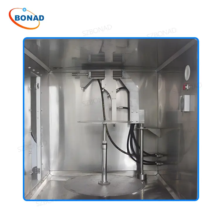 Yes. The chamber has an integrated design that allows automatic testing without manually holding the spray gun. Test parameters, including water flow, temperature, duration, and nozzle angles, are adjustable via a 7-inch touchscreen interface.